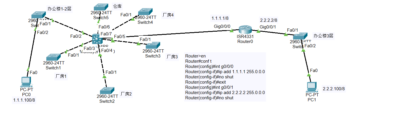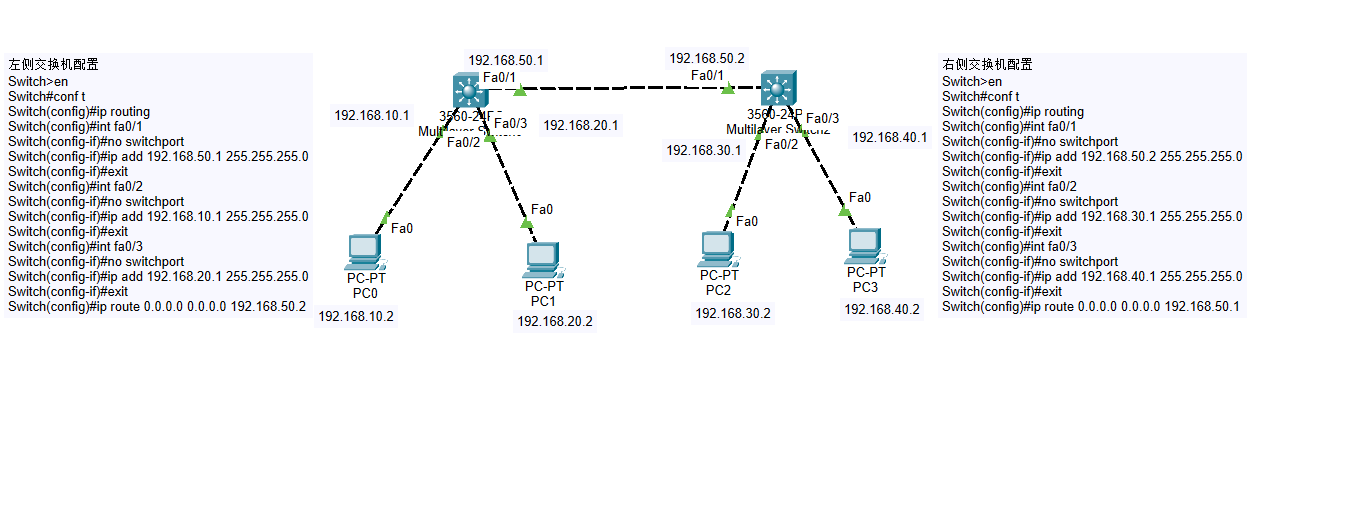 实验六 三层交换机配置默认路由实现互通 实验
